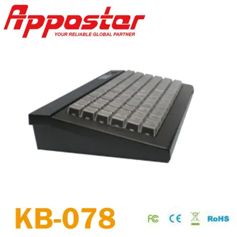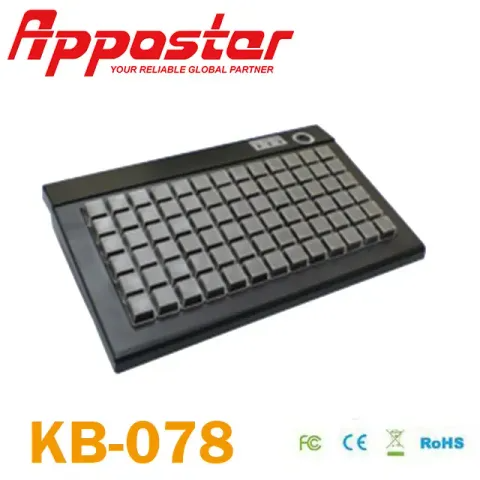 The Appostar Programmable Keyboard represents a professional-grade input solution engineered for Point-of-Sale applications. This versatile keyboard features high-durability mechanical switches with an impressive MTBF rating of 20 million keystrokes, ensuring exceptional longevity in demanding commercial environments. Each key can be programmed with up to three distinct characters, maximizing functionality within a compact footprint. The keyboard offers six key positions and accommodates multiple key top sizes (1x1, 1x2, and 2x2), enabling customizable configurations. Security is enhanced through an integrated key lock mechanism for controlled access. For additional functionality, the keyboard can be equipped with an optional magnetic card reader, making it an ideal choice for retail and hospitality applications requiring reliable, programmable input capabilities.
