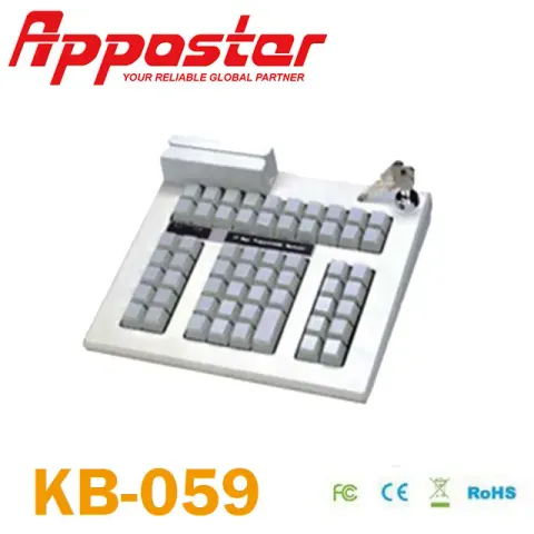 The Appostar Programmable Keyboard represents excellence in POS system integration, meticulously engineered to meet both ISO and JIS standards. This versatile keyboard offers comprehensive connectivity options through KN wedge, USB, and RS-232 interfaces, ensuring seamless compatibility across diverse system environments. Distinguished by its advanced programming capabilities, users can customize critical functions including carriage returns and sentinels. The keyboard's thoughtful design incorporates three distinct cable outlet options, providing optimal installation flexibility. This professional-grade input device delivers reliable performance while maintaining strict compliance with international quality standards, making it an ideal choice for demanding commercial applications.